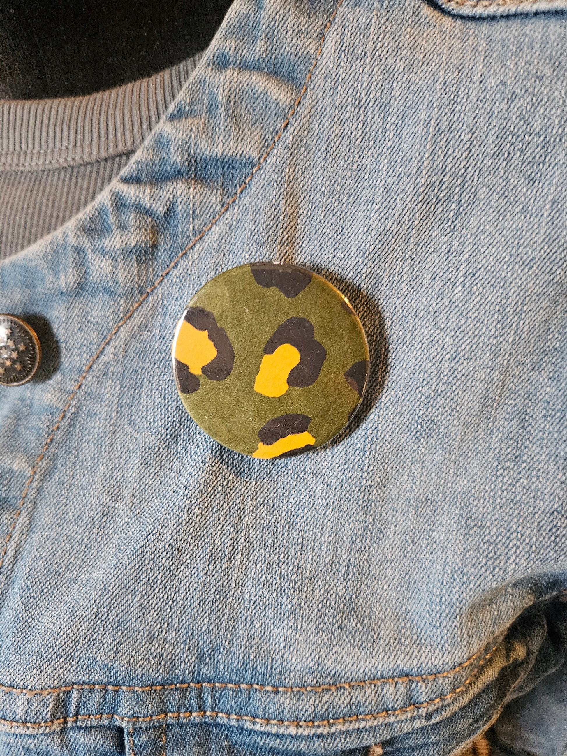 🌿 Un accessoire raffiné inspiré par l’art japonais Ce badge unique met en valeur la beauté du papier japonais vert léopard une teinte profonde et vibrante Son motif délicat et ses nuances harmonieuses en font un véritable bijou de caractère, parfait pour personnaliser vestes, sacs ou accessoires du quotidien.