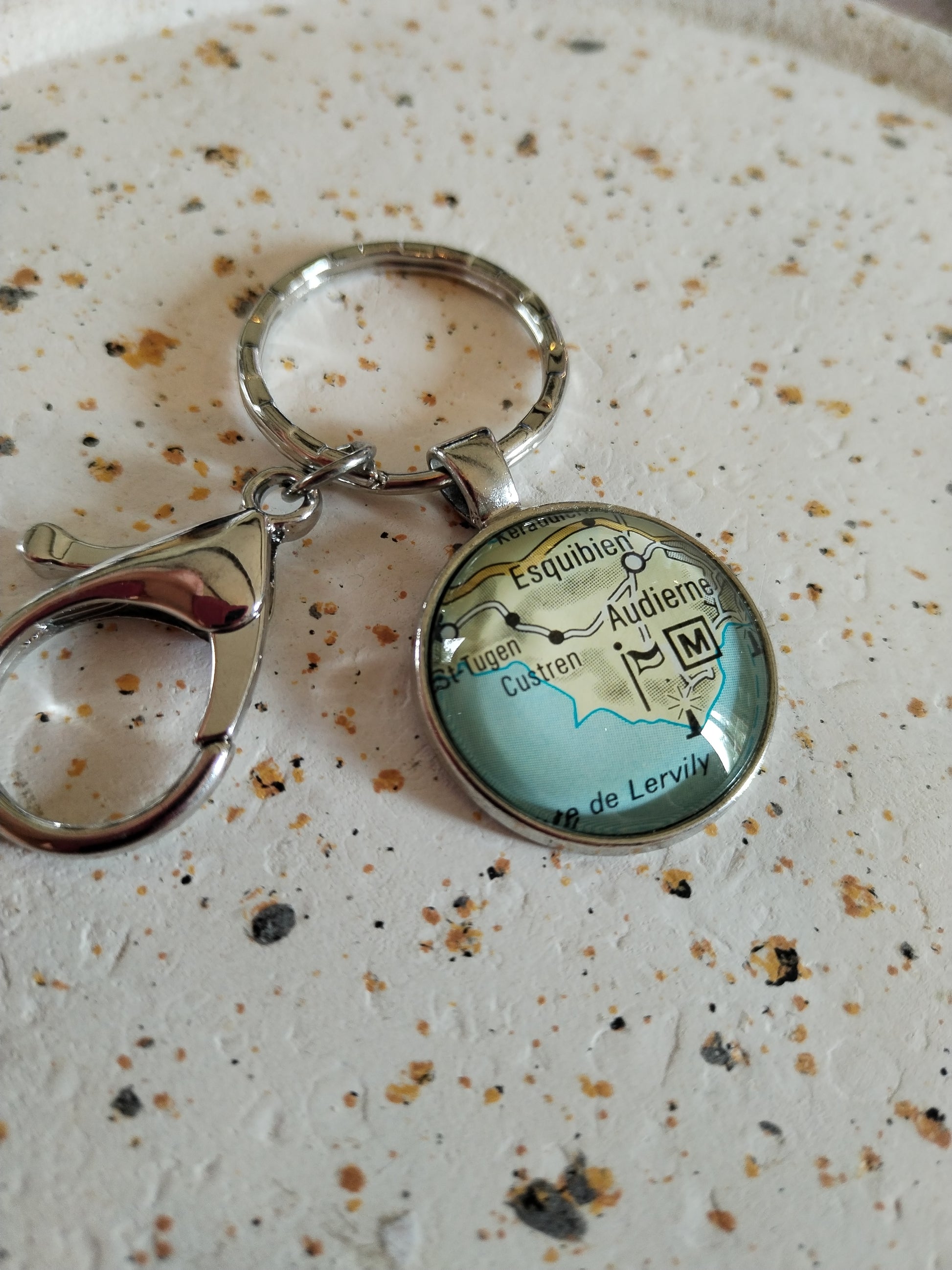 Porte-clé Audierne – Carte routière recyclée | Souvenir de Bretagne