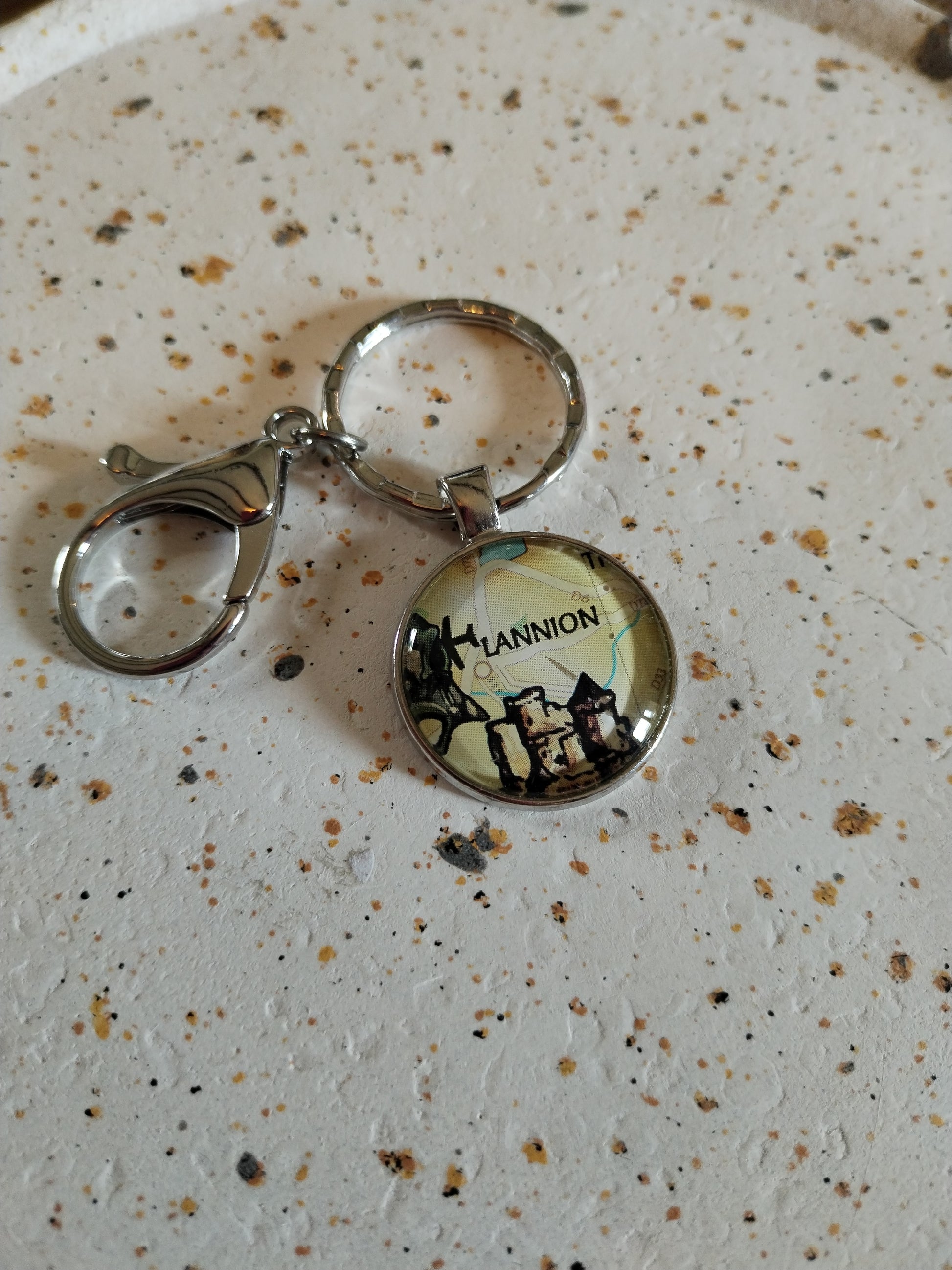 Porte-clé Lannion – Carte routière recyclée | Souvenir de Bretagne