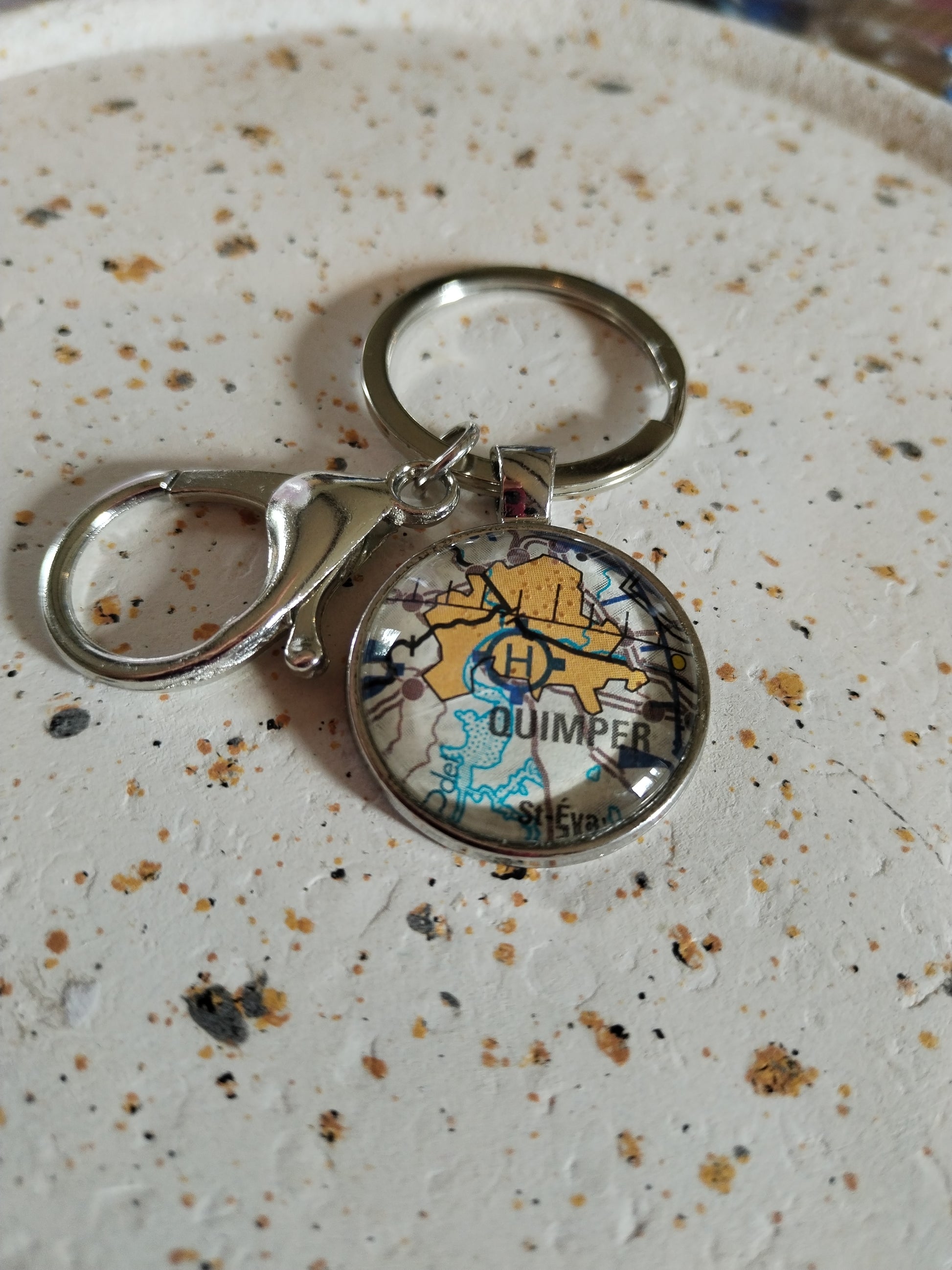 Porte-clé Quimper – Un fragment de voyage à emporter | Bijou recyclé carte aéronautique