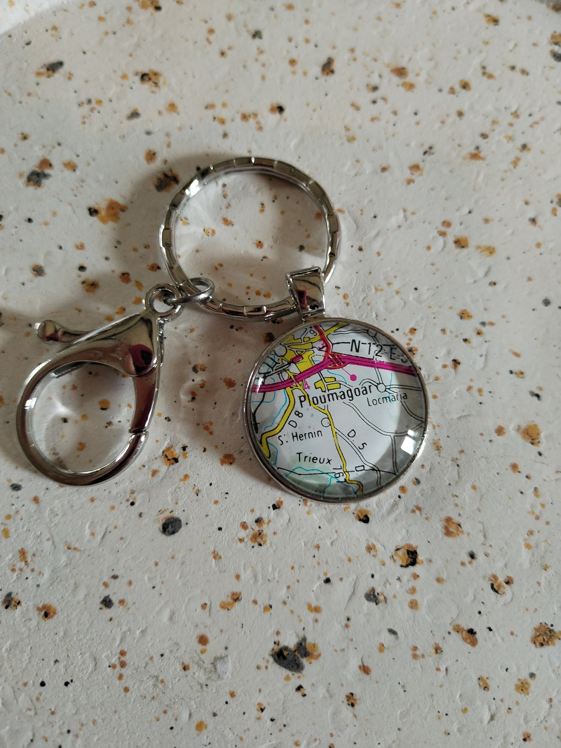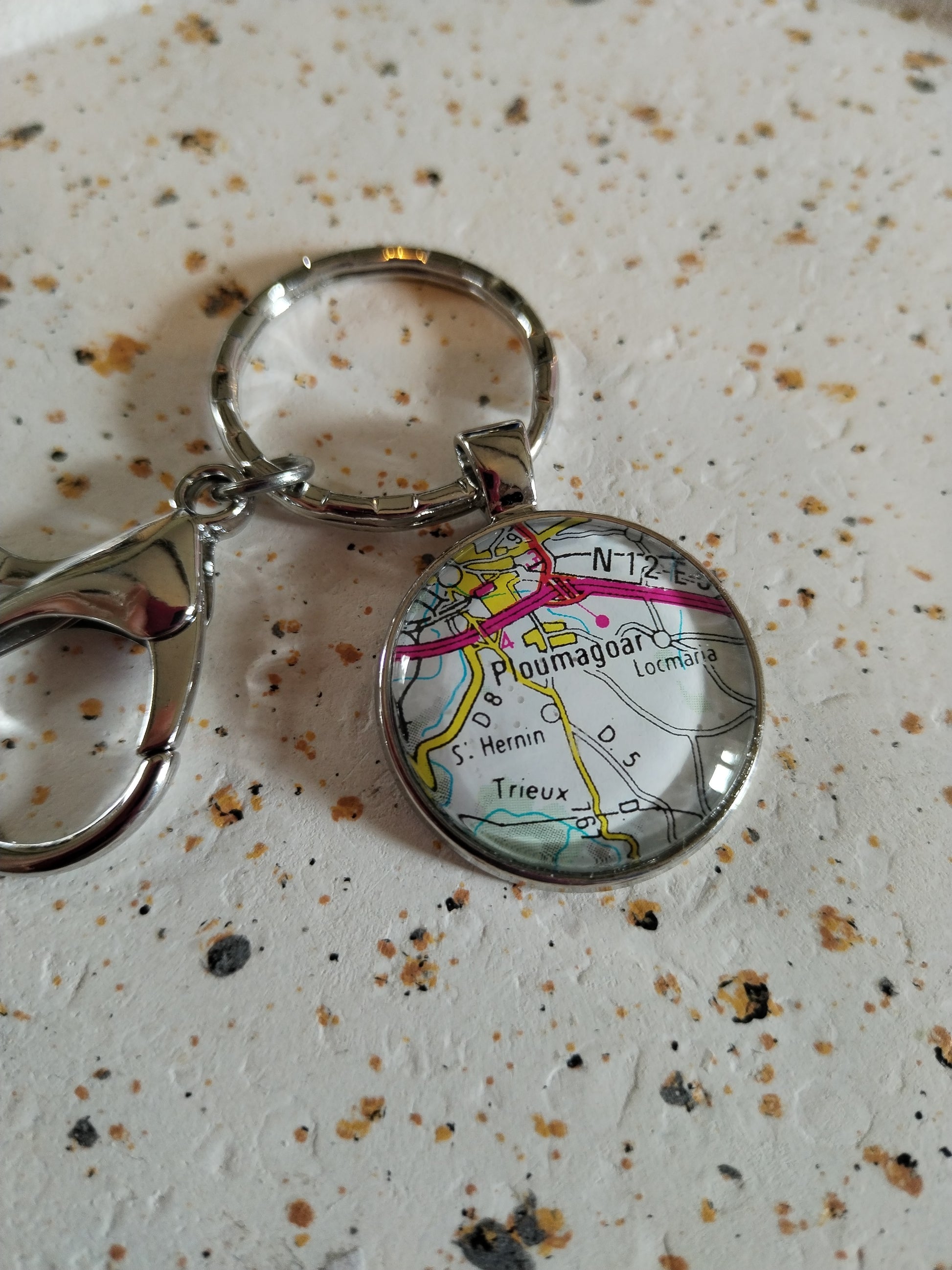 Porte clé recyclage carte routière - Ploumagoar (22) - Côtes d'Armor