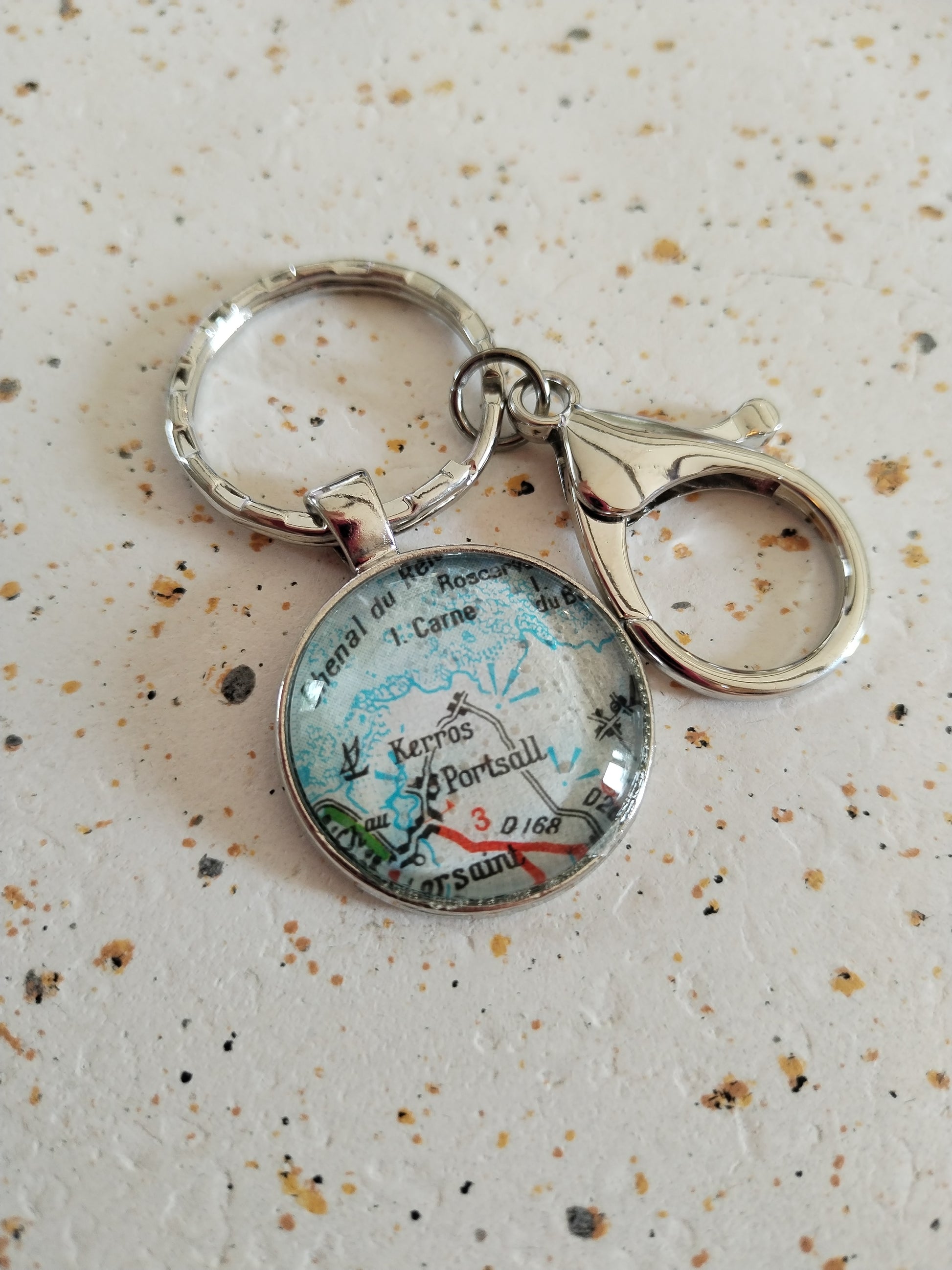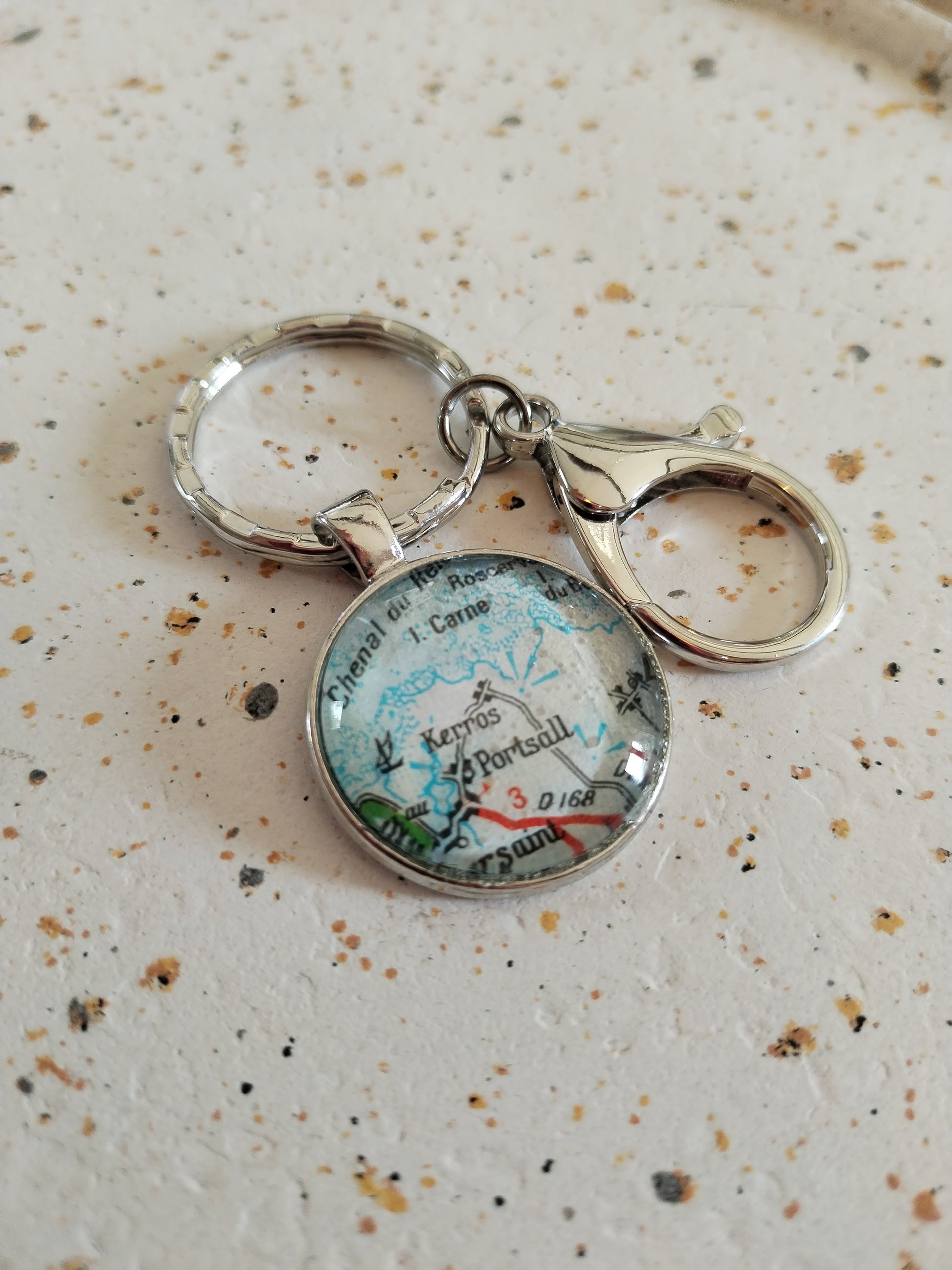 Porte clé recyclage carte routière - Portsall (29) - Finistère