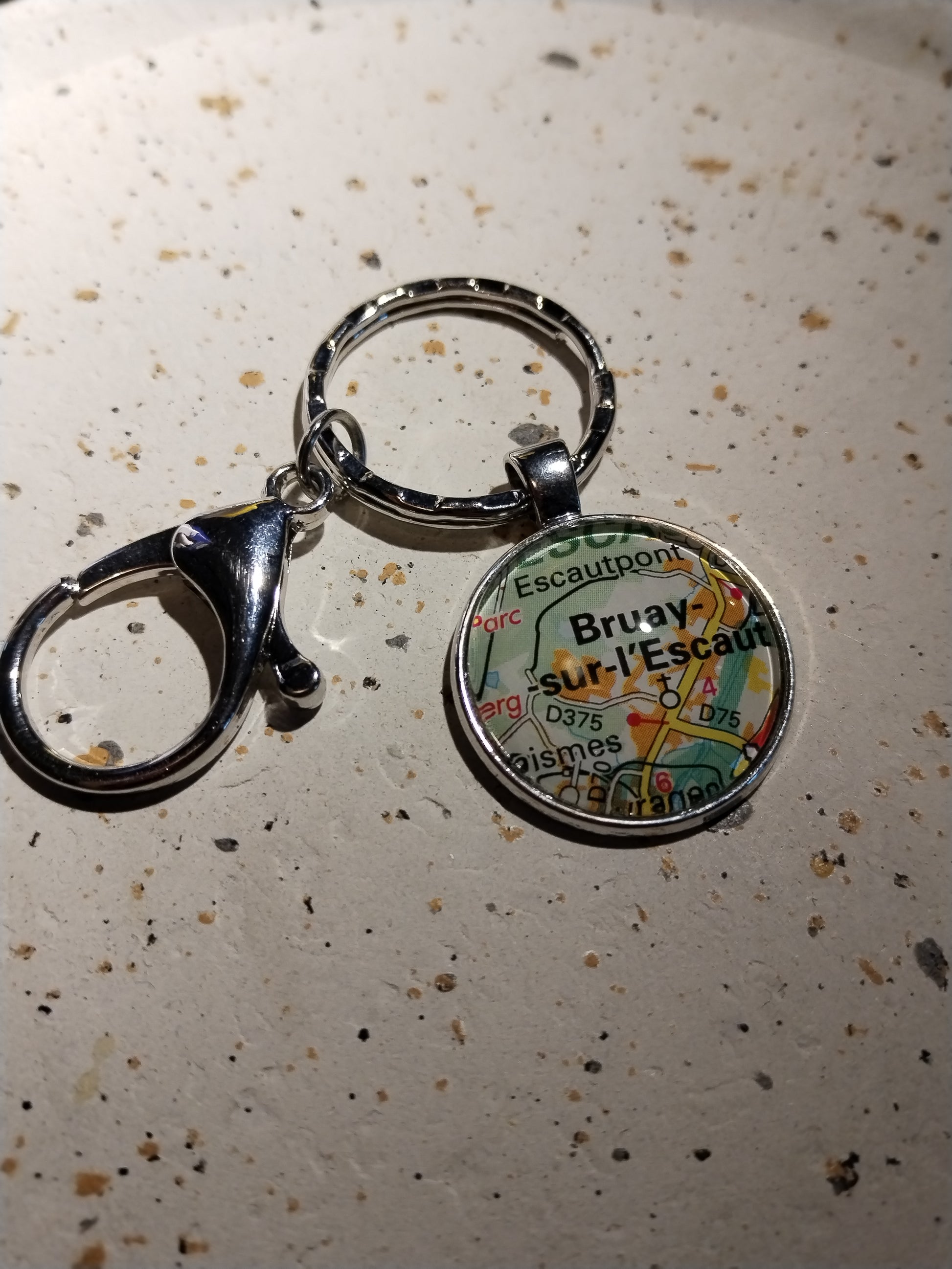 Porte-clefs cabochon 25mm - Recyclage carte routière - BRUAY SUR L'ESCAUT